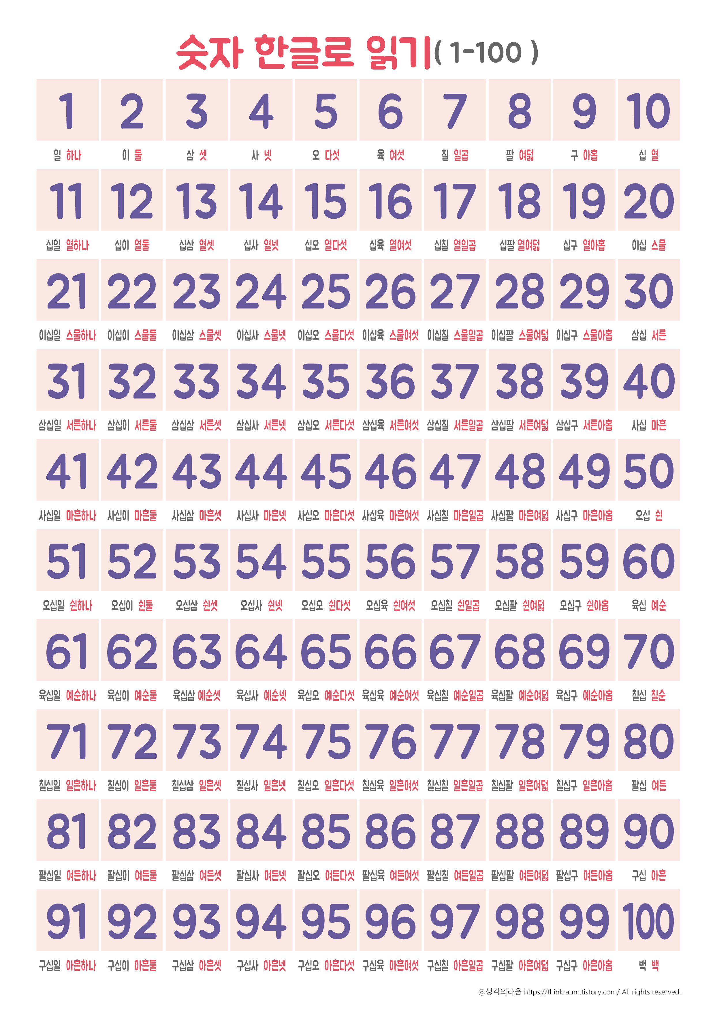 제일 검색이 많이되는 숫자 한글 읽기표를